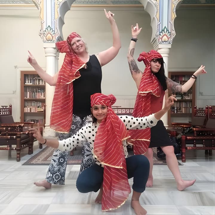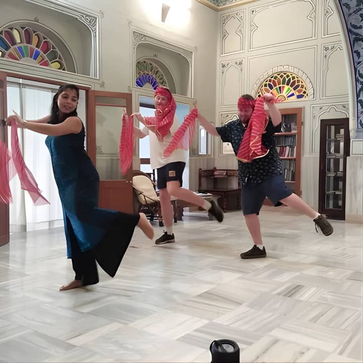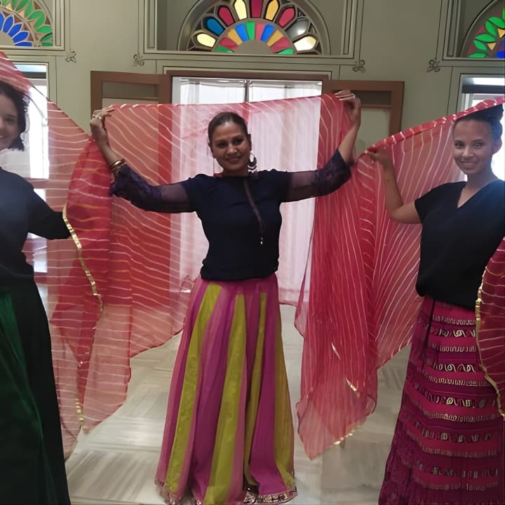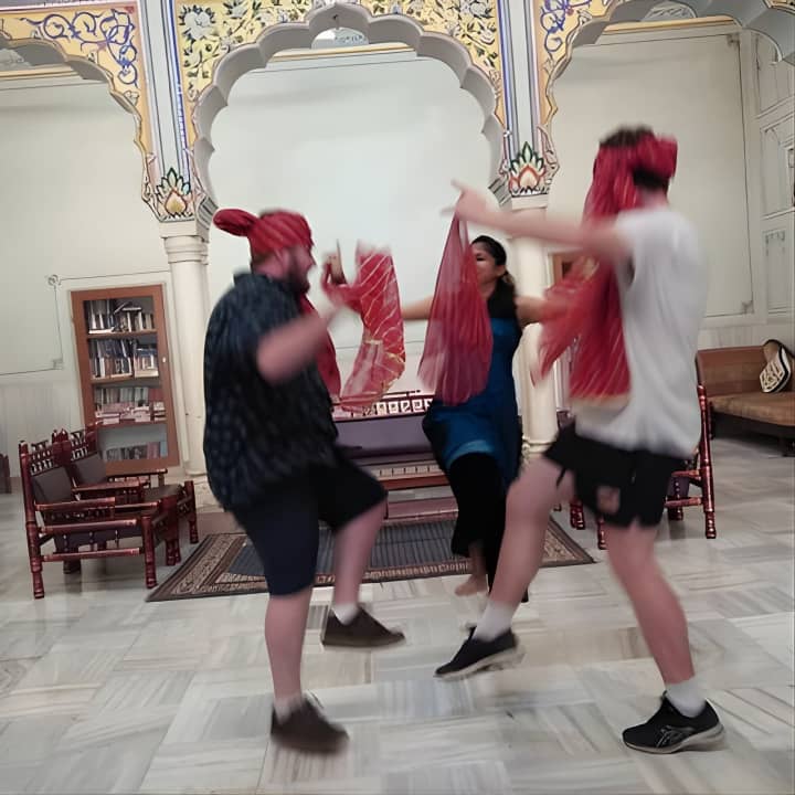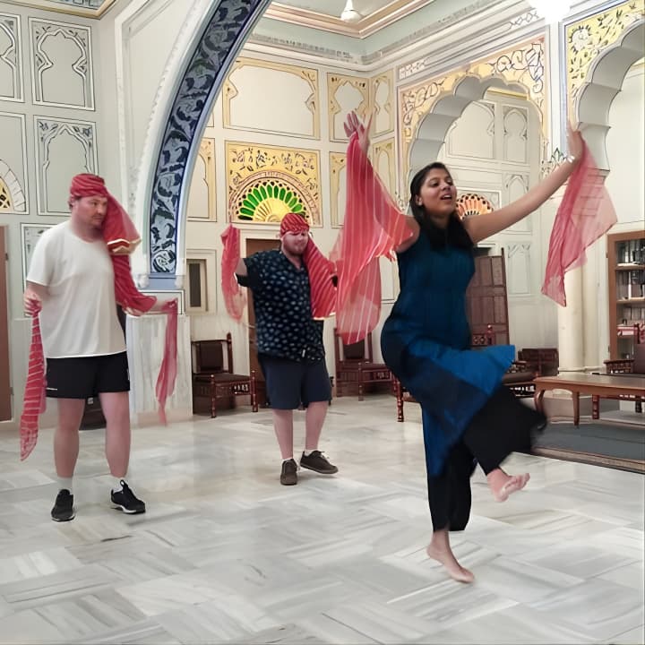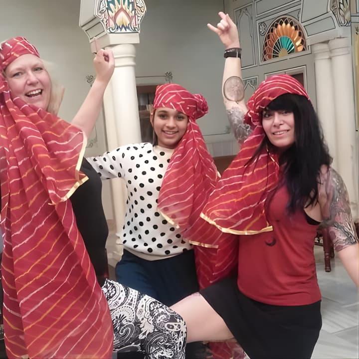 Join us for an energetic Bollywood Dance Class - Groove and shake on Hindi Movie hits! Our young and spirited trainer makes every session a blast, using fun props like Indian turbans and dupattas. Held in a charming 100-year-old heritage hall at a top Jaipur hotel, it's the perfect setting to learn. Snap some awesome pics to share with friends, and dive into lively dance numbers with universal appeal. Ready to try some folk dances like Bhangra too? Get your tickets for Bollywood Dance Class - Groove and shake on Hindi Movie hits!