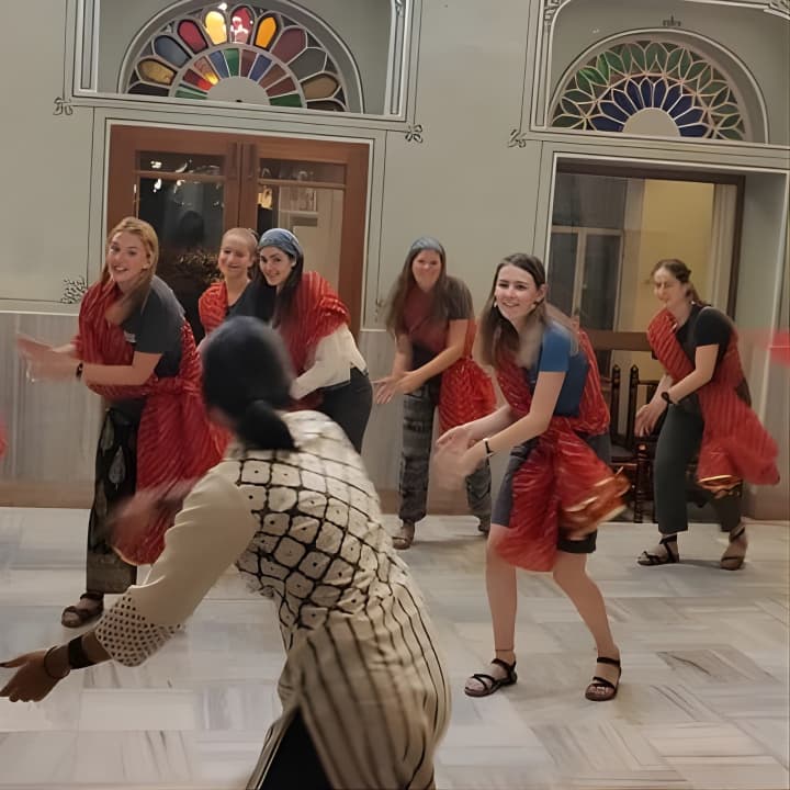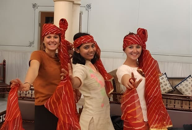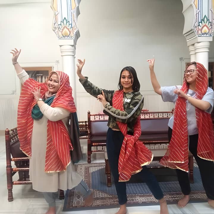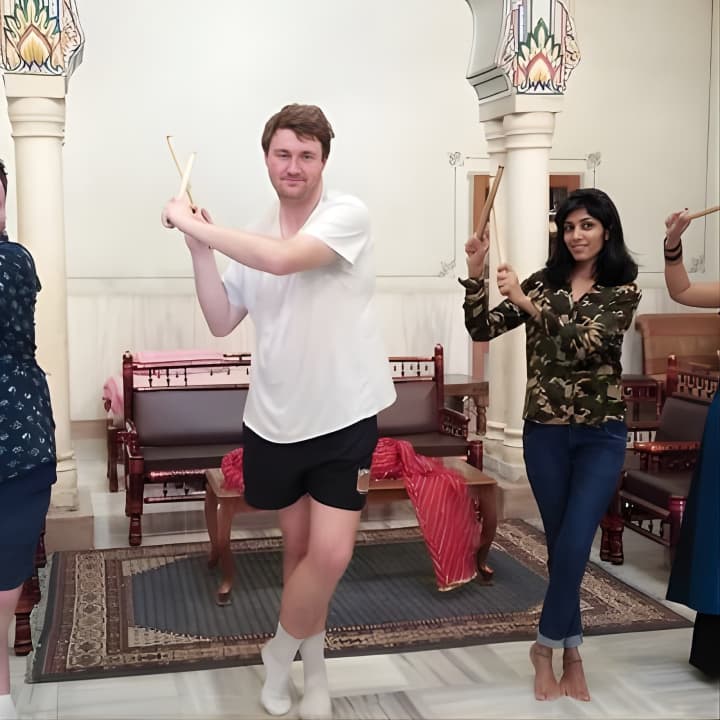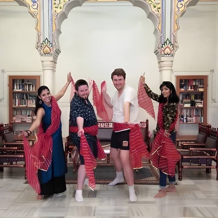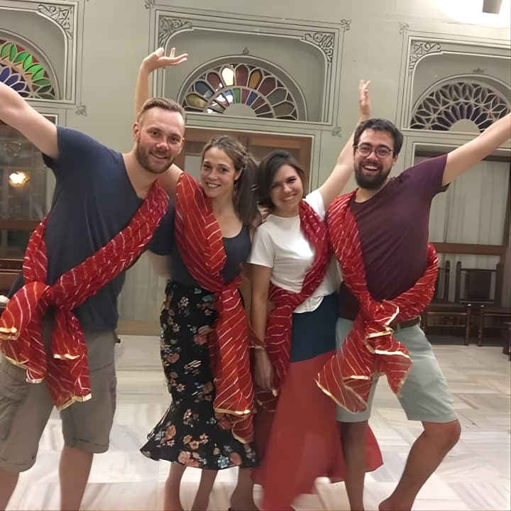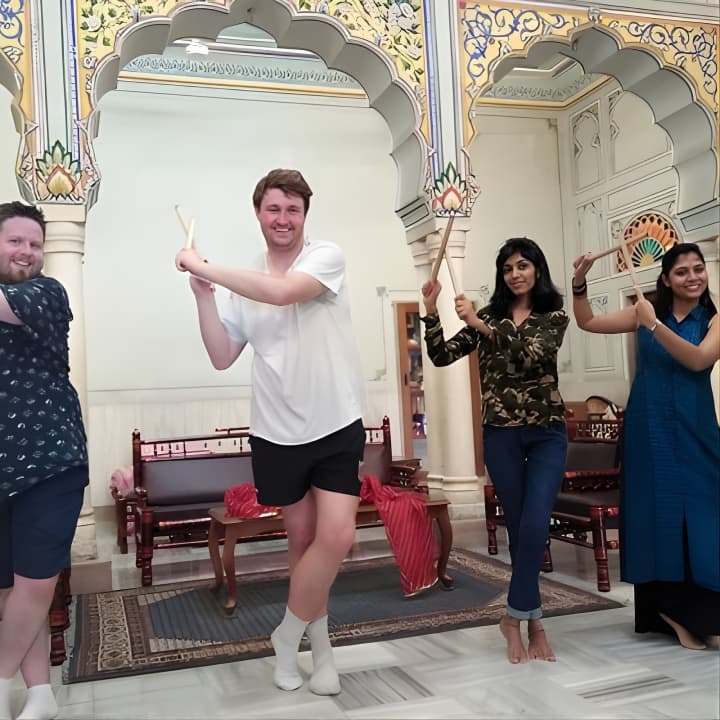 Join us for an energetic Bollywood Dance Class - Groove and shake on Hindi Movie hits! Our young and spirited trainer makes every session a blast, using fun props like Indian turbans and dupattas. Held in a charming 100-year-old heritage hall at a top Jaipur hotel, it's the perfect setting to learn. Snap some awesome pics to share with friends, and dive into lively dance numbers with universal appeal. Ready to try some folk dances like Bhangra too? Get your tickets for Bollywood Dance Class - Groove and shake on Hindi Movie hits!