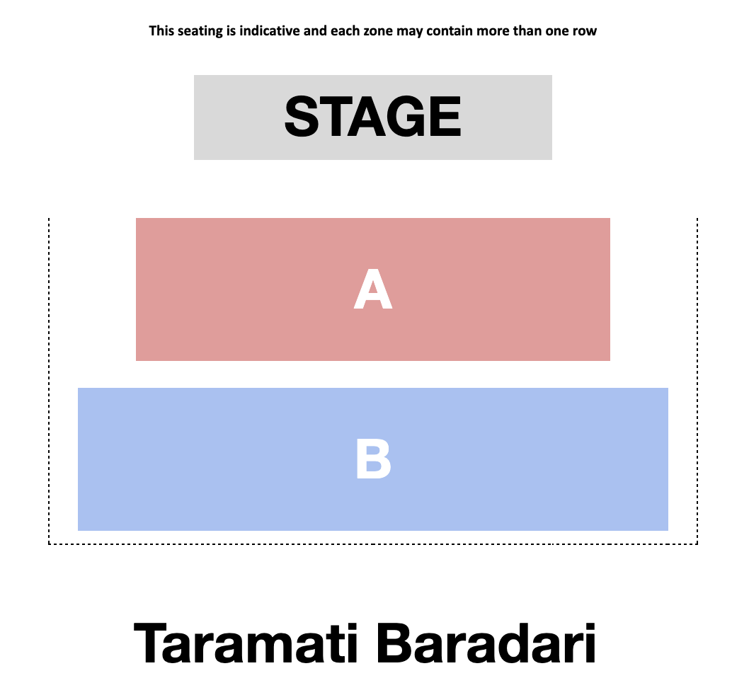The venue is an outdoor amphitheatre with a view of the historical Taramati Baradari sarai, completed in the 19th century.